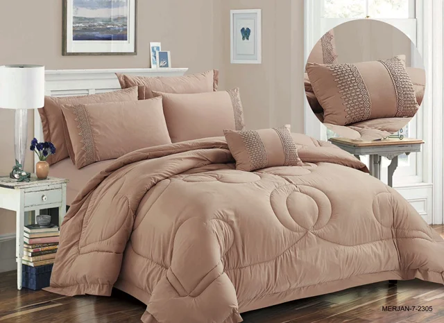 دو نفره قابل شستشو بدون تغییر رنگ و پرز دهی شامل/لحاف. ملحفه کش دار .4عدد رو بالشتی . کوسن روی لحاف دوخت دو طرفه وجود دارد که باعث میشود الیاف داخل لحاف جا به جا نشود