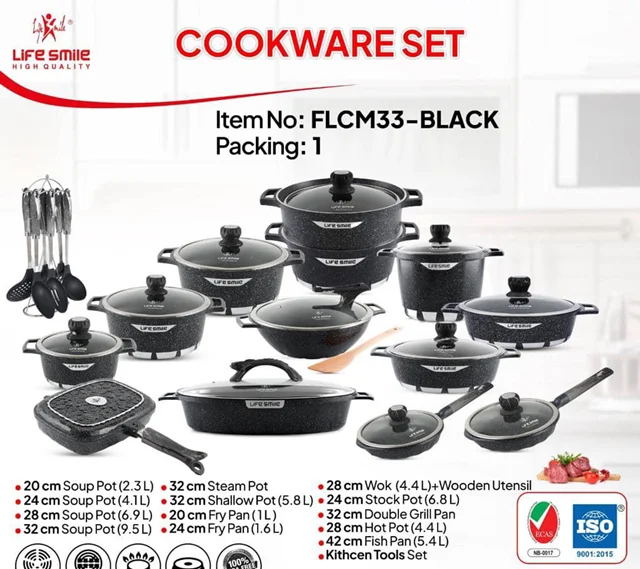 سرویس ۳۳ پارچ سوپر گرانیت لایف اسمایل در سه رنگ مدل FLCM33 - سیاه