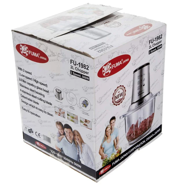 خردکن فوما مدل FU-1982، دستگاهی کاربردی با کاربری آسان است که با برخورداری از کیفیت بالا و قدرت موتور 500 وات مورد توجه قرار گرفته و برای مصارف خانگی انتخاب مناسبی محسوب می شود. این محصول به دلیل بهره مندی از تیغه 4 پره استیل، قادر به خرد کردن سبزیجات، خشکبار، گوشت، پیاز، سیب زمینی و ... در مدت زمان کوتاهی می باشد. جنس ظرف خردکن Fuma FU 1982 از جنس شیشه شفاف با ظرفیت 2 لیتر است که علاو بر داشتن گنجایش بالا، می توان بر میزان خرد شدن مواد غذایی نیز نظارت داشت. خاموش و روشن کردن این مدل توسط دکمه ای که برای آن طراحی شده، امکانپذیر می باشد و تنظیم سرعت در دو حالت براساس نیاز، از دیگر مزایای ویژه این خرد کن فوما به شمار می آید که در خرد کردن هر چه بیشتر مواد با سرعت زیاد، نقش بسزایی را ایفا می کند.