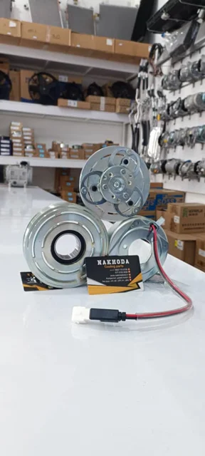 کلاچ کولر یا کلاچ کمپرسور:کمپرسور به وسیله تسمه نیروی چرخشی خود را از موتور خودرو میگیرد و تسمه هم از طریق پولی نیروی چرخشی منتقل شده توسط تسمه را به کمپرسور منتقل میکند، پس پولی همیشه در حال چرخش است.اما سؤال این جاست که پس چطور ما میتوانیم کولر خودرو و در نتیجه کمپرسور را خاموش و روشن کنیم اگر همیشه پولی در حالی چرخش است؟جواب اینجاست: کلاچ کمپرسوراما کار این قطعه چیست؟کلاچ کولر وظیفه درگیر کردن کمپرسور با پولی سر کمپرسور را دارد یعنی کلاچ بین پولی و کپرسور قرار دارد و هر وقت که اقدام به روشن کردن کولر شود، کلاچ کمپرسور را به پولی متصل کرده و باعث چرخش آن میشود.کلاچ چگونه این کار را انجام میدهد؟داخل کلاچ کولر یک بوبین یا آهنربا ی الکتریکی قرار دارد (یعنی یک سیم پیچ که با اتصال برق تبدیل به آهنربا میشود)، وقتی شما کولر خودرو را روشن مینمایید این آهنربا فعال شده و باعث بسته شدن و در نهایت درگیر شدن و ارتباط کمپرسور با پولی میگردد.