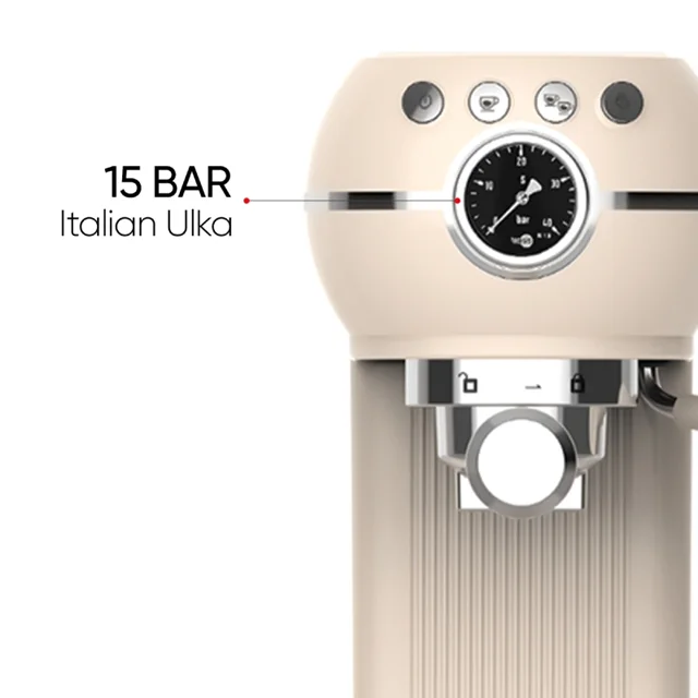 عملکرد حرفهای برای قهوهای خوشطعم پمپ ۱۵ بار ULKA ایتالیا – عصارهگیری بینقص و کرم غلیظ روی اسپرسو عملکرد پیشتزریق (Pre-Infusion) – استخراج عطر و طعم کامل قهوه نازل بخار قابل تنظیم – ایجاد کف شیر نرم و خامهای برای لاته و کاپوچینو امکانات کاربردی و طراحی مدرن مخزن آب ۱.۵ لیتری قابل جدا شدن – ظرفیت مناسب و شستوشوی آسان نشانگر میزان بخار آب – کنترل دقیقتر فرآیند تهیه قهوه سیستم خاموشی خودکار – صرفهجویی در مصرف انرژی ساخته شده از مواد مقاوم و باکیفیت بدنه استیل ضدزنگ – طراحی شیک و دوام بالا سینی چکهگیر – جلوگیری از کثیفی سطح کار