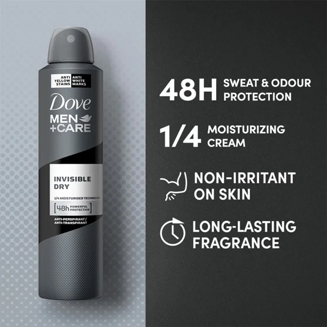 اسپری ضد تعریق مردانه Invisible Dry داو یک راهحل کارآمد و اثباتشده برای مهار تعریق و بوی نامطبوع بدن است که ۴۸ ساعت ماندگاری را تضمین میکند. فرمولاسیون ویژه این محصول باعث محافظت از پوست و همچنین جلوگیری از ایجاد لکههای سفید یا زرد بر روی لباس میشود. اگر پوست حساس دارید یا نگران رسوب دئودورانت روی لباسهای تیره و روشن هستید، این اسپری پاسخی مطمئن به همه نیازهای شماست. قابلیت خشکشدن سریع، رایحهای خوشایند و حجم مناسب، همگی عواملی هستند که خرید و استفاده از آن را برای هر مردی ضروری میسازد.