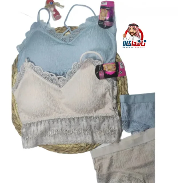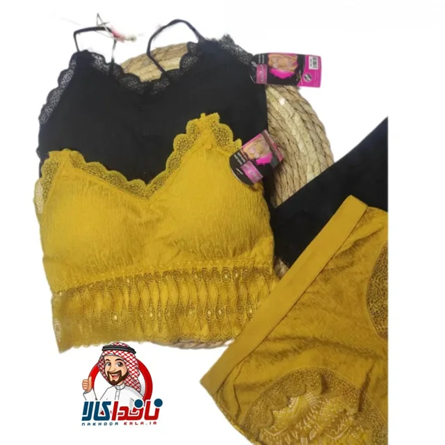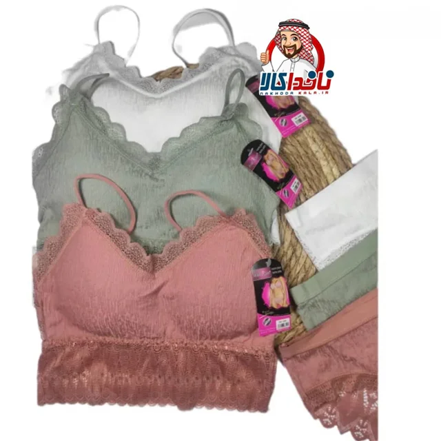 طرح گیپور ودانتل دار رنگ بندی خردلی*سبز کناری*سفید*فیلی*مشکی*یاسی*صورتی چرک*کرم*خاکستری سایزبندی فری سایز مناسب سایز60الی80 شورت قواره دار فاق شورت دولایه ونخی جنس نرم لطیف کاپ قابل برداشت دوبنده به همراه بند ضربدری درپشت بند ثابت وغیرقابل تنظیم