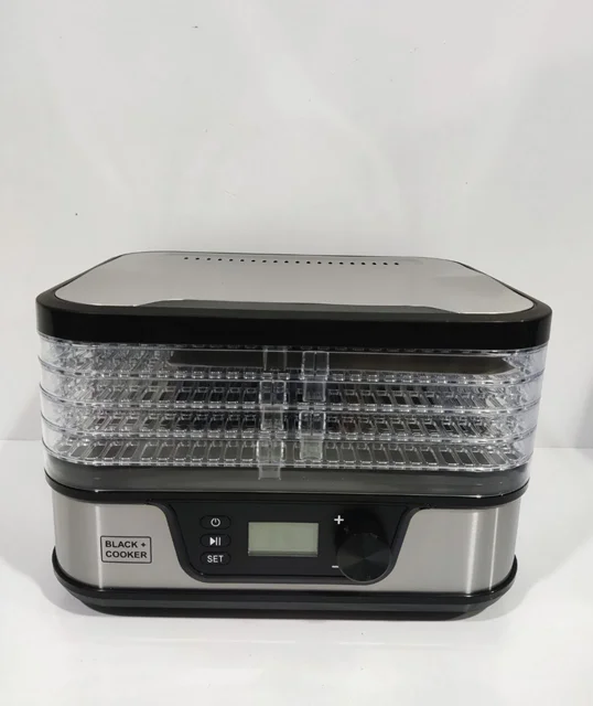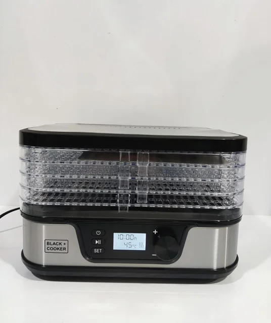 🟩میوه خشک کن بلک کوکر 🟩این میوه خشک کن قدرتی معادل 320 تا 380 وات 🟩دارد. خشک کردن به قطر و نوع میوه بستگی دارد. 🟩هنگام خشک کردن این سینی های مشبک توانایی 🟩جدا شدن برای نظافت ساده تر دارند. دارای صفحه 🟩نمایش دیجیتال و دکمه تنظیم دما و تایمر است.