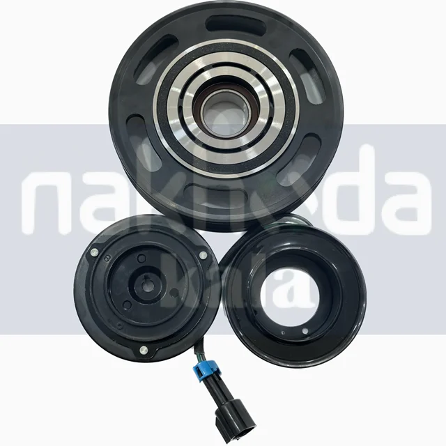 کلاچ کولر یا کلاچ کمپرسور:کمپرسور به وسیله تسمه نیروی چرخشی خود را از موتور خودرو میگیرد و تسمه هم از طریق پولی نیروی چرخشی منتقل شده توسط تسمه را به کمپرسور منتقل میکند، پس پولی همیشه در حال چرخش است.اما سؤال این جاست که پس چطور ما میتوانیم کولر خودرو و در نتیجه کمپرسور را خاموش و روشن کنیم اگر همیشه پولی در حالی چرخش است؟جواب اینجاست: کلاچ کمپرسوراما کار این قطعه چیست؟کلاچ کولر وظیفه درگیر کردن کمپرسور با پولی سر کمپرسور را دارد یعنی کلاچ بین پولی و کپرسور قرار دارد و هر وقت که اقدام به روشن کردن کولر شود، کلاچ کمپرسور را به پولی متصل کرده و باعث چرخش آن میشود.کلاچ چگونه این کار را انجام میدهد؟داخل کلاچ کولر یک بوبین یا آهنربا ی الکتریکی قرار دارد (یعنی یک سیم پیچ که با اتصال برق تبدیل به آهنربا میشود)، وقتی شما کولر خودرو را روشن مینمایید این آهنربا فعال شده و باعث بسته شدن و در نهایت درگیر شدن و ارتباط کمپرسور با پولی میگردد